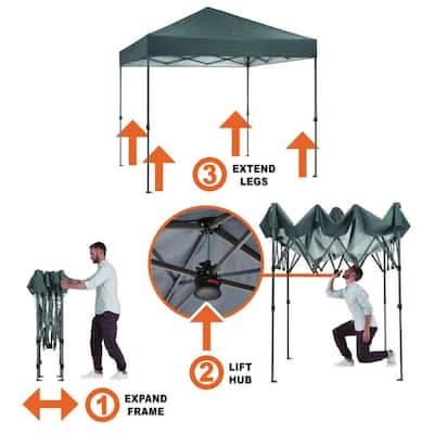Create an instant picnic pavilion for camping trips or outdoor excursions with this Everbilt Sto-N-Go pop-up tent. The straight legs deliver stability for dependable use outdoors, and the canopy-style top shields you and your guests from the sun. An adjustable height option lets you customize the setup to suit your available space, while the gray color scheme offers a neutral look to blend seamlessly with outdoor party decor. Boasting a collapsible design and included bag, this Everbilt Sto-N-Go pop-up tent packs away neatly when not in use for convenient storage.
