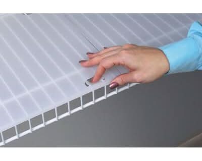 Cover your pantry or closet wire shelving with this White Vinyl Shelf Liner to keep small items secure. The cut-to-fit installation is easy and doesn't require any hardware. Special locking tabs fit into the shelf to keep the liner from shifting. This liner works well with ClosetMaid wire shelves.