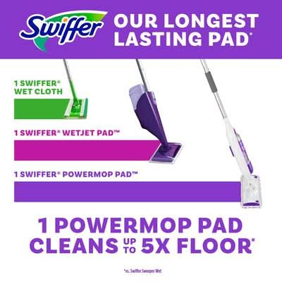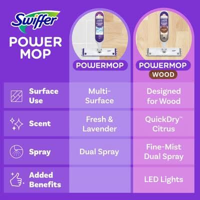 Mop smarter with the Swiffer PowerMop, an all-in-one mopping system that gives you a mop and bucket clean in half the time*. The multi-surface mopping pads have 300+ scrubbing strips that reach deep into grooves and grout to remove sticky spills and daily dirt and grime. The fresh scent of PowerMop solution will fill your home with freshness for hours**. Some assembly required; batteries included.*vs. mop and bucket - includes cleaning and drying time**Leaves behind up to 2 hours of freshness after initial product use Color: Purple