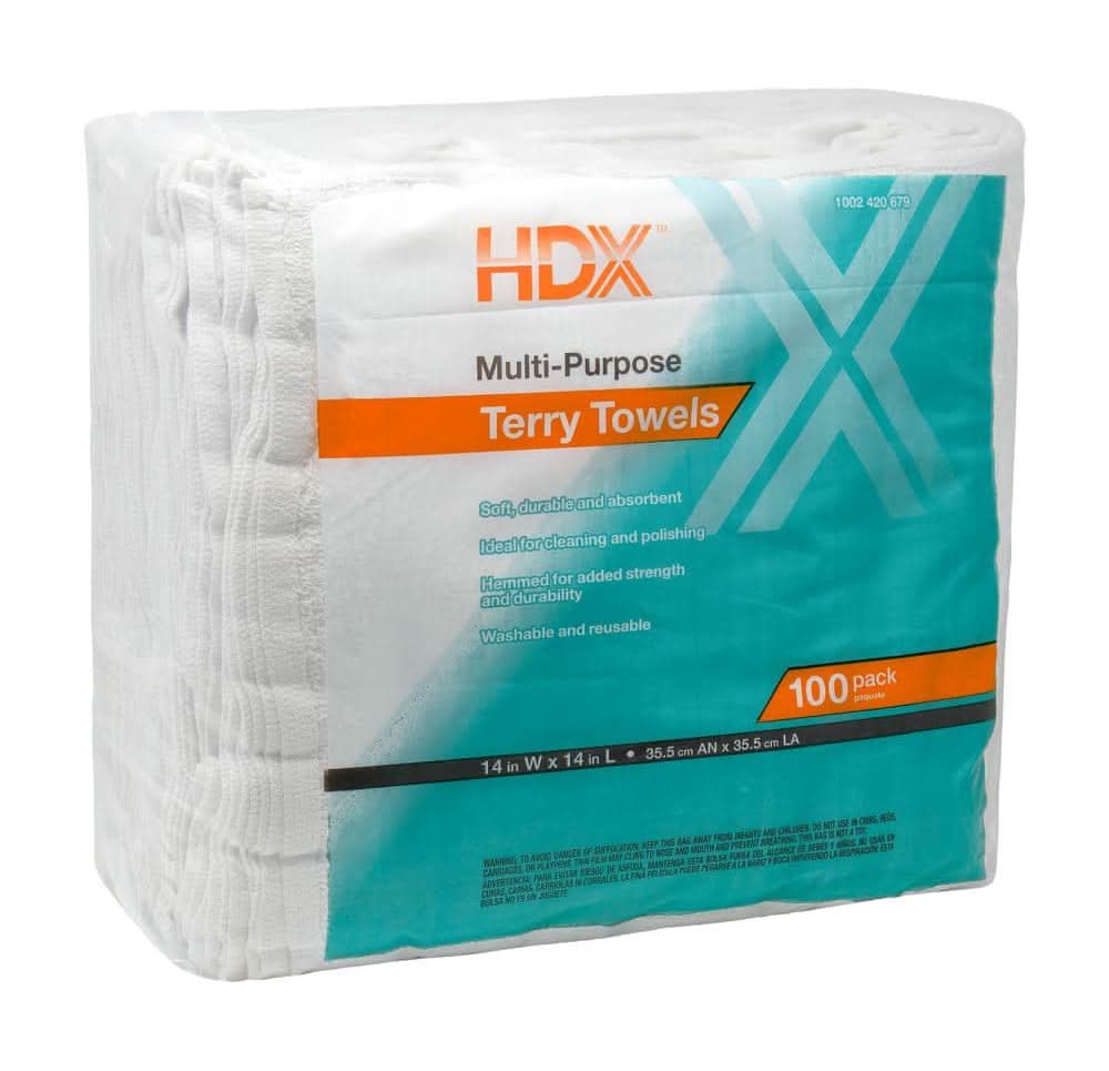 Hdx 14 In. X 14 In. Terry Towels (100-Count)