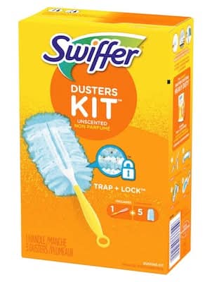 Swiffer Dusters TRAP and LOCK dust and remove up to 95% of allergens. And, with thousands of fluffy, specially coated fibers, Swiffer Dusters grab onto dust and don't let go. Use Swiffer Dusters for cleaning wherever dust shows up, including fan blades, blinds, car interior, keyboard vents, bookcases and more. Common inanimate allergens from cat and dog dander and dust mite matter. • Color: Assorted • Procter & Gamble, Cincinnati , OH , 45202