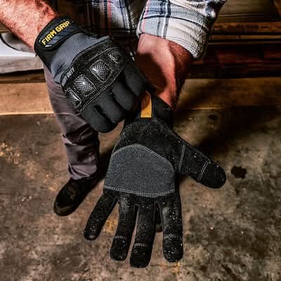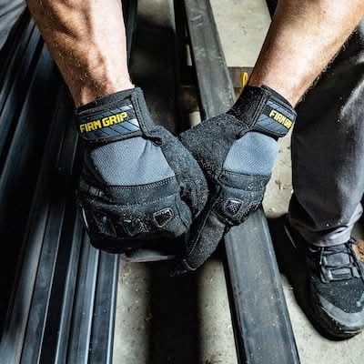 Engineered to keep your hands safe during high-impact tasks, Firm Grip Heavy Duty work gloves are reinforced with rugged knuckle molds for back-of-hand protection and a durable, abrasion-resistant palm with a textured grip for added control. The breathable mesh back and stretch panels between the fingers deliver enhanced comfort and improved dexterity. These work gloves are ideal for demolition, masonry California residents see Prop 65 warnings.WARNING: Cancer and Reproductive Harm - www.P65Warnings.ca.gov Size: Large