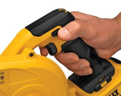 The DEWALT 20-Volt Max Lithium-Ion Cordless Blower (DCE100B) is ideal for clearing debris from the ground or overhead and also works well for blowing out equipment. A 3-speed design offers versatility for a range of jobs, while its compact profile makes it perfect for use in tight spots. This blower is part of the versatile 20-Volt Max battery system and is sold on its own, so you can add it to your collection and use with your existing DEWALT battery and charger.