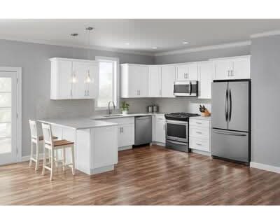 Add extra storage above your fridge, freezer or sink with this Hampton Bay Avondale Shaker Quick Assemble wall bridge cabinet. The shorter design creates a seamless fit, creating a bridge between long cabinets. A pr Drilling, sawing, sanding or machining wood products can expose you to wood dust, a substance known to the State of California to cause cancer. Avoid inhaling wood dust or use a dust mask or other safeguards for personal protection. For more information go to https://www.p65warnings.ca.gov/wood