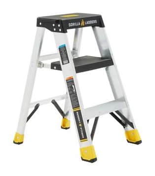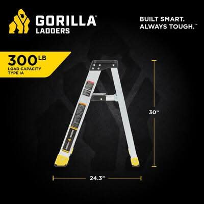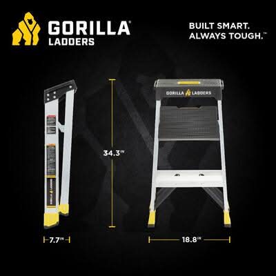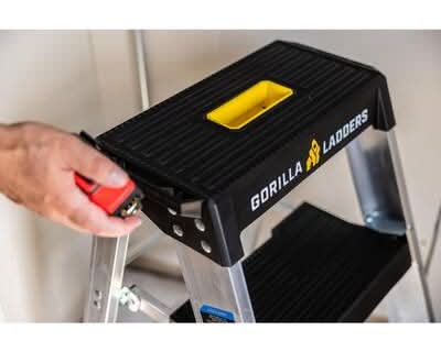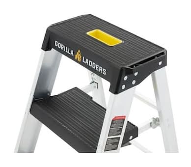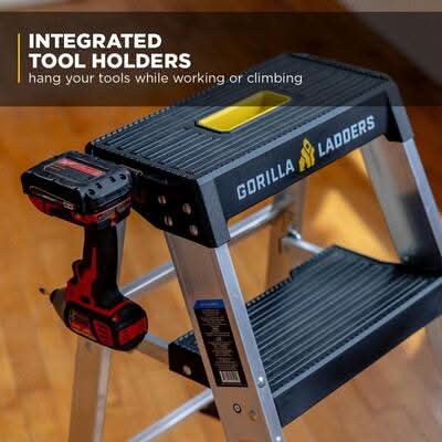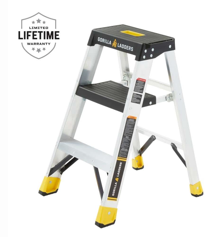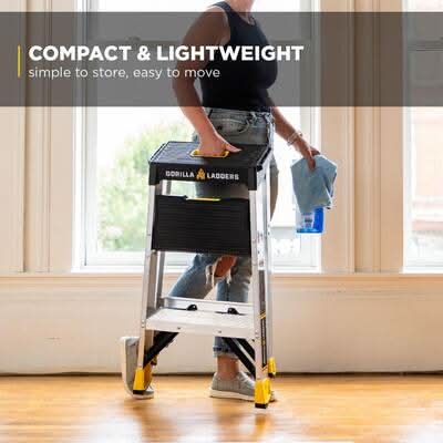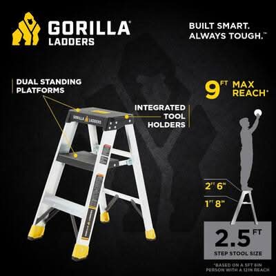 Gorilla Ladders 2.5 Ft. Aluminum Step Ladder 9 Ft. Reach Pro Dual Platform Compact, 300 Lbs. Capacity Type Ia Duty Rating