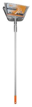 This broom's extra wide sweep path will sweep wet or dry debris. Heavy-duty fibers are ideal for both indoor and outdoor use, while the professional grade 1 in. Dia steel handle with comfort grip makes it easier to use. The rugged block ensures long-lasting use and the angled fibers reach into corners. Includes a heavy-duty dustpan with rubber lip to help sweep the debris into the pan, not under it. Size: 15 in