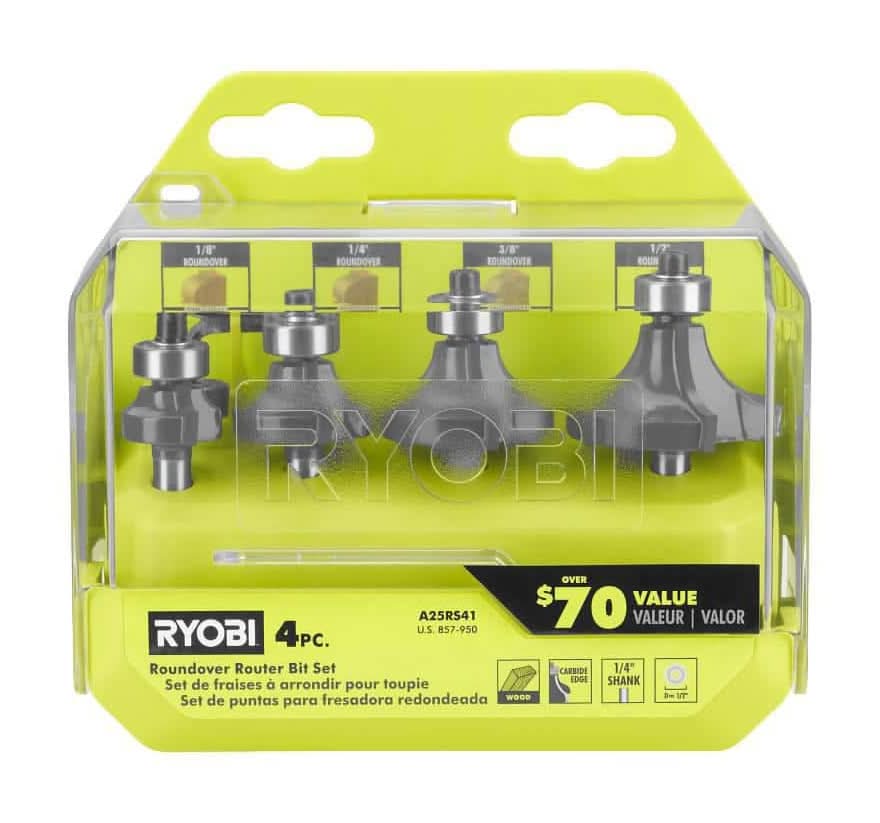 RYOBI introduces the Roundover Router Bit Set (4-Piece). This set is great for professionals and DIYers. The bits have carbide blade edges for durability. The Roundover Router Bit Set contains 1/4 in., 3/8 in. and 1/2 in. sized roundover router bits with a bonus 1/8 in. bit. Cancer and Reproductive Harm - www.p65warnings.ca.gov