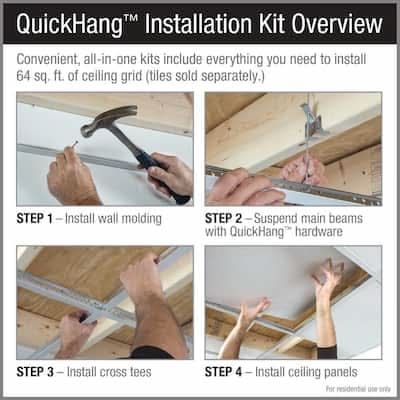 The Armstrong QUICKHANG Installation Kit 6362WH is a convenient, DIY-friendly grid kit that includes everything you need to install 64 sq. ft. of drop ceiling grid. The included QUICKHANG hooks and brackets are a quick and easy way to install and level drop ceiling grid. Also available is a 2 ft. x 4 ft. white kit (model 6364WH) and a 2 ft. x 2 ft. black kit (model 6362BL). Note: Ceiling tiles are sold separately.
