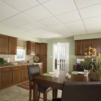 Armstrong BRIGHTON 2 ft. x 2 ft. ceiling panels feature a rough plaster visual and grid-minimizing edge detail. Its high light reflectance helps to keep your space bright. Installs in Armstrong PRELUDE 15/16 in. Suspended Ceiling Installation System. Size: 2 ft