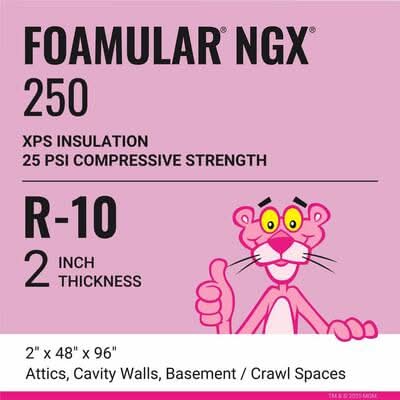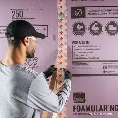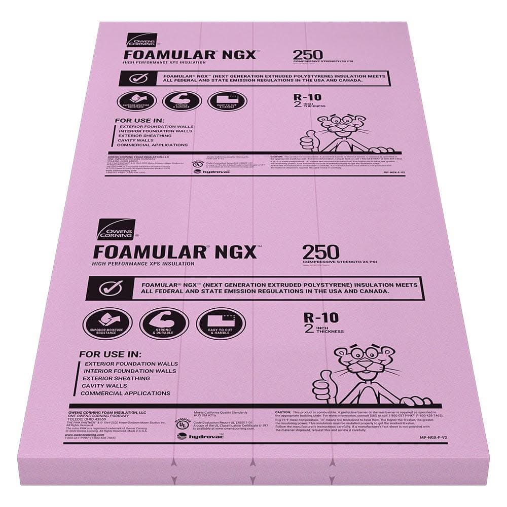 Owens Corning FOAMULAR NGX (Next Generation Extruded) insulation, is produced with a proprietary blowing agent that delivers a 90% reduction to Global Warming Potential (100 year) compared to current FOAMULAR. The new formulation and production process meets or exceeds new, more stringent regulatory standards without sacrificing product performance and offers a comprehensive line of products in a wide choice of sizes, thicknesses and edges with a Lifetime limited warranty for the life of the home or building. Foam insulation boards are easy to handle, score, cut and install & no special tools are needed. Foam insulation products can be used on wood, steel framing or concrete walls. FOAMULAR NGX resists moisture and retains R-value even after exposure to standing water and wet soil. Owens Corning FOAMULAR NGX insulation offers all the physical properties and ease-of-use you expect from Owens Corning FOAMULAR insulation with industry-leading sustainability. Size: 2 In. X 4 Ft. X 8 Ft.