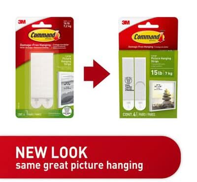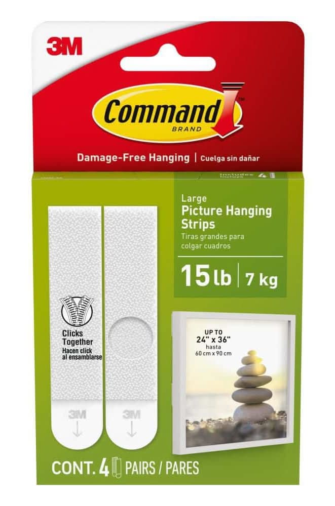 Command Large Picture Hanging Strips, White, Damage Free Hanging, 4 Pairs