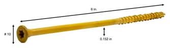 Designed to make the most out of your outdoor project. Use the Deck Mate brand exterior screws for all treated lumber and all exterior projects to connect wood to wood. A lifetime polymer coating provides extra-corrosion resistance that is guaranteed for the life of your outdoor project. WARNING: Cancer and Reproductive Harm- www.P65Warnings.ca.gov Size: 6x1/4 in