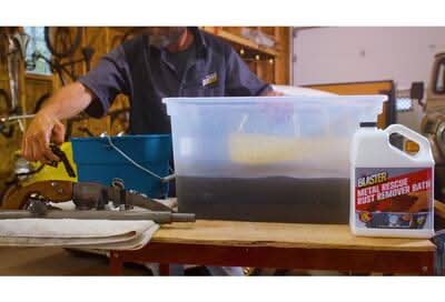 B'laster Metal Rescue Rust Remover Bath is your clean, safe and easy solution to removing rust from iron and steel. B'laster Metal Rescue utilizes a unique and selective chelating agent to remove rust (iron oxide) without posing any health, safety or environmental concerns. It is water-based, biodegradable, non-toxic and environmentally friendly. No messy acids or creams needed. It also removes bluing, browning, zinc phosphate, and other oxide finishes. It effectively brightens chrome, copper and copper alloys such as brass and bronze. Metal Rescue will also NOT damage aluminum, brass, chrome, gold, lead, nickel, nickel alloys, silver, titanium, tungsten and solder or solder points. Metal Rescue is safe on everything except rust! Just Soak, Check, Rinse and Dry. It's THAT easy!