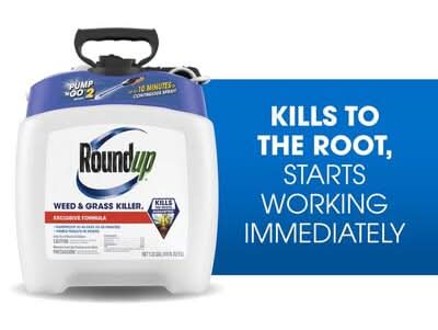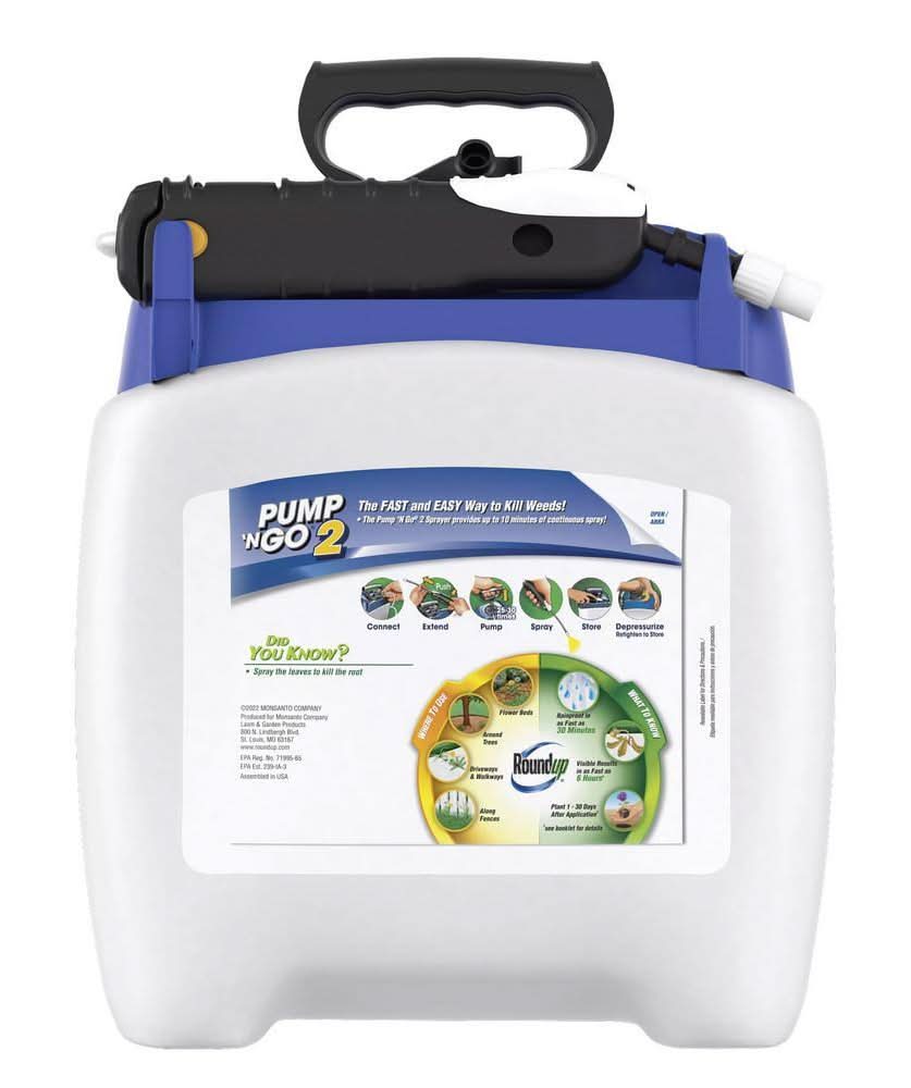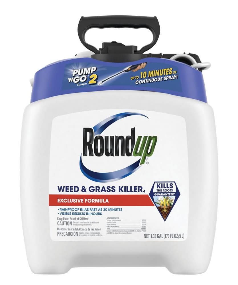 Take control of your outdoor space with Roundup Weed and Grass Killer4 with Pump 'N Go 2 Sprayer. It kills tough weeds and grasses to the root, including dandelion, crabgrass, poison ivy, clover (red and white), spotted spurge, and other broadleaf weeds. It is rainproof in as fast as 30-minutes, produces visible results in hours, and allows you to plant 1-days to 30-days after application (see booklet for details). Use Roundup Weed and Grass Killer4 with Pump 'N Go 2 Sprayer in and around flower beds and perennial landscape plants, around trees and shrubs, on patios, walkways, and driveways, gravel, or mulch beds, along fences and foundations, and edging around foundations and retaining walls. The Pump 'N Go 2 Sprayer with an extendable wand provides greater accuracy without bending over. With Pump 'N Go 2, you don't need to mix your own liquid, and get up to 10-minutes of continuous spray. Do not allow people or pets to enter the treated area or touch treated plants until spray has dried. One 1.33 gal. container of Roundup Weed and Grass Killer4 with Pump 'N Go 2 Sprayer covers up to 400 sq. ft.