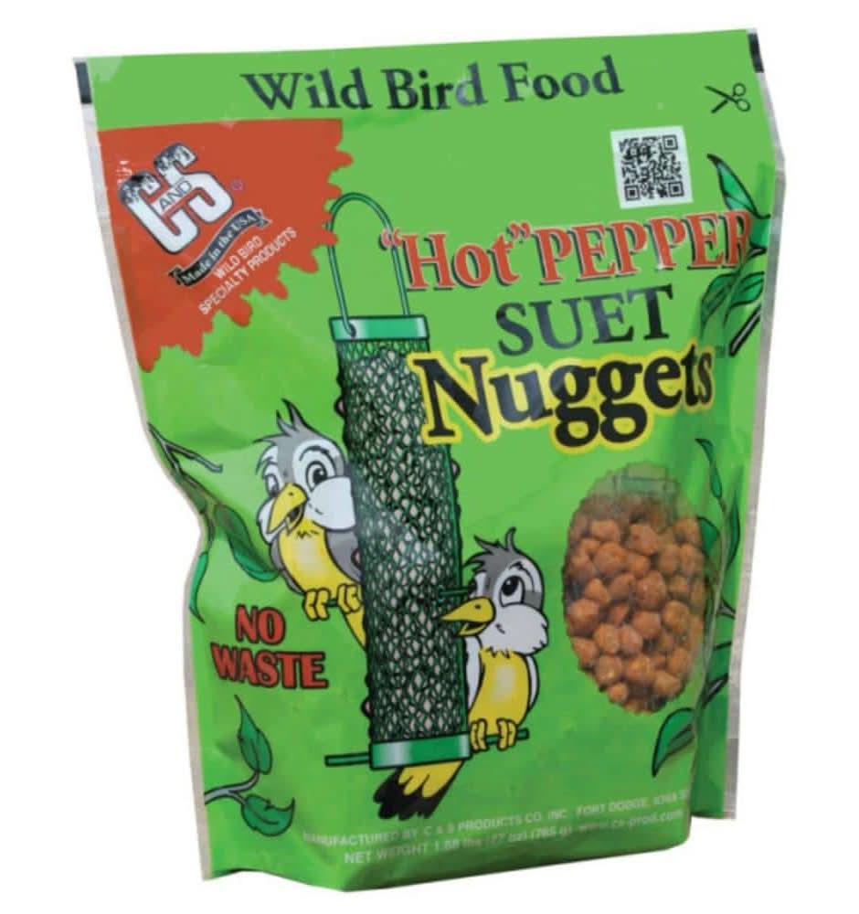 C&S Products Co., Inc. 1.7 lbs. Wild Bird Hot Pepper Suet Nuggets will attract a variety of wild birds. This high energy treat is good for attracting songbirds and it comes in a resealable bag.
