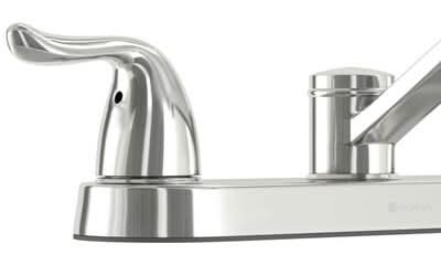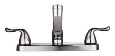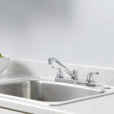 The Glacier Bay Constructor 2-Handle Kitchen Faucet in Chrome features durable long-lasting metal construction and an easy to clean chrome finish. A classic look that complements a wide variety of kitchen decor, this faucet features a convenient dual-handle design with separate handles for hot and cold that give you precise control of your water temperature. Pair with other pieces from the Constructor Collection for a complete and polished look.