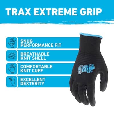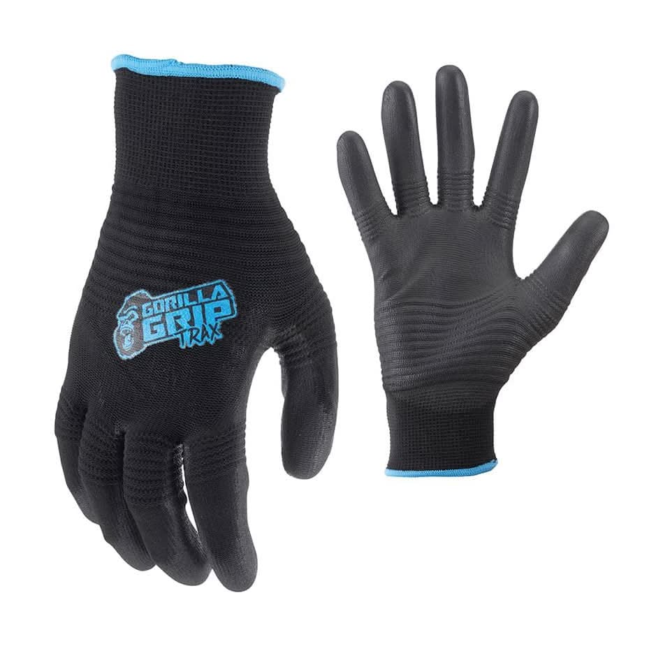 Combining the unrivaled performance of Gorilla Grip Never Slip Technology with a rugged, textured design that channels dirt and grime away from surface contact areas, Gorilla Grip TRAX work gloves deliver maximum gripping power in the most extreme conditions. Proprietary polymer technology on the palm pulls moisture away from the surface and the heavy-duty, ribbed design pushes dirt and grit into the va California residents see Prop 65 warnings.WARNING: Cancer and Reproductive Harm - www.P65Warnings.ca.gov