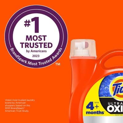 When your clothes work just as hard as you do, you need a laundry detergent that works overtime to get your clothes incredibly clean and smelling great. Tide Ultra Oxi plus Heavy-Duty Laundry Detergent is made for professionals just like you. with 3X more stain-removing power*, it handles set-in stains, dirt and tough odors with ease-no pretreating required. for amazing results, Tide Ultra Oxi plus Heavy-Duty formula uses less water and more ultra-concentrated ingredients to give your clothes the most powerful clean for your buck day in and day out. Tide Liquid Laundry Detergent works in all washing machines and water conditions-even in cold water. It's no wonder Americans count on the #1 laundry detergent brand x to get the job done right every time. x vs. the leading competitive liquid detergent. Voted most trusted laundry brand by American shoppers based on the 2023 BrandSpark American Trust Study.