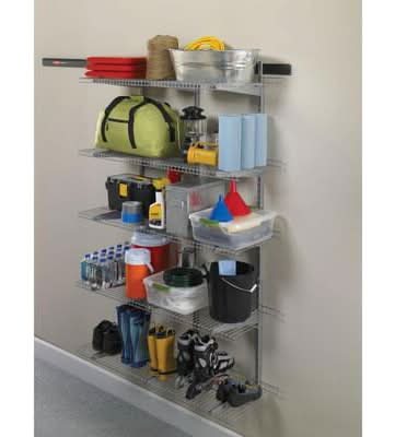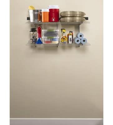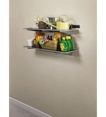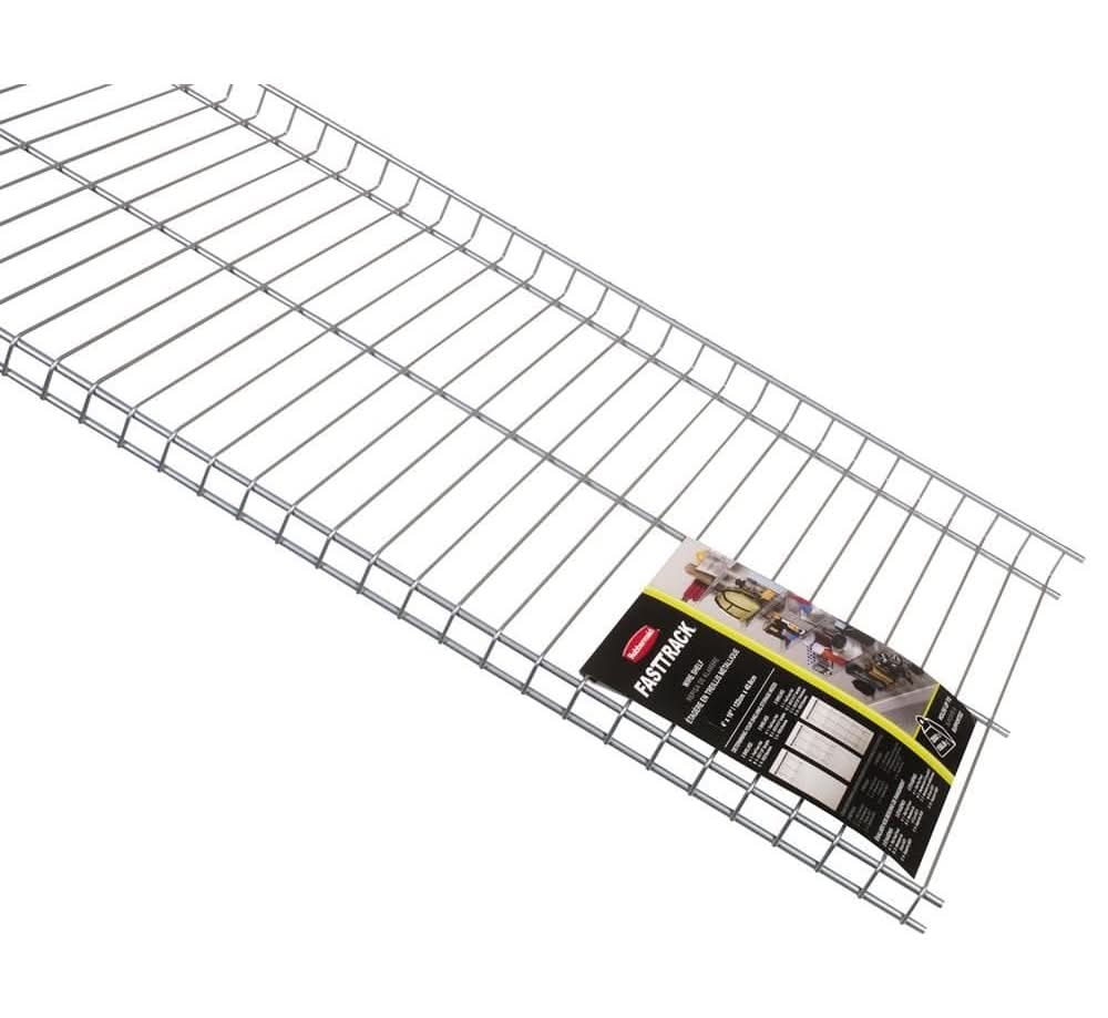 Get your garage or workshop neat and organized with the Rubbermaid FastTrack Garage Wire Shelf. Strong and sturdy, this wire shelf supports up to 350 lbs., making it ideal for large items such as heavy tools or storage bins, and is ventilated to help keep items dry. Featuring a powder-coated silver metallic finish that resists rust, chipping and cracking, this shelf requires FastTrack uprights and 3 brackets for easy installation.