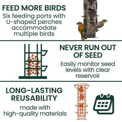 With the Perky-Pet Squirrel-Be-Gone Bird Feeder you get elegant design and squirrel-resistant function all in one convenient package. The metal cage is adorned with a leafy design that will look at home in any yard. In addition, the metal is finished with a powder coating to enhance the rustic look, wh This product can expose you to chemicals including Bisphenol A, which is known to the State of California to cause birth defects or other reproductive harm. For more information go to www.P65Warnings.ca.gov. Perky Pet, Lilitz PA17543