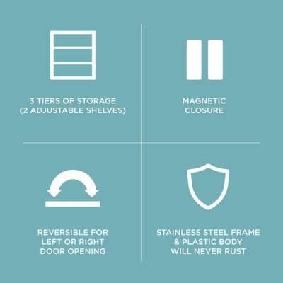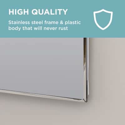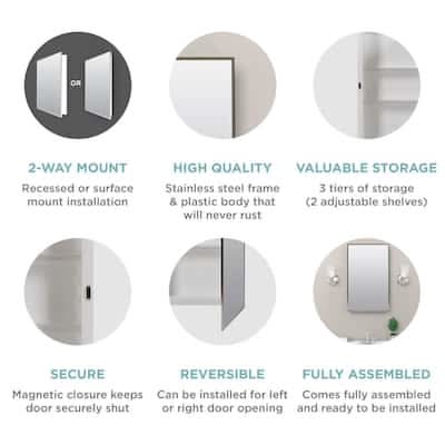 It's easy to like what you see when you look into the mirror of this Zenna Home Framed Mirror Medicine Cabinet! Made for your choice of surface or recessed-mount installation, this versatile cabinet has a classic stainless steel framed mirror front and a durable plastic body. Its beveled mirrored door has a magnetic closure. Open the door and you'll find 3 tiers of storage (including 2 adjustable plastic shelves) to keep toiletries, medicine and other essentials conveniently in reach but out of sight. Size: 16.1 in X 26.1 in