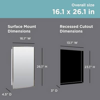 Zenith 16 In. W X 26 In. H Rectangular Recessed Or Surface Mount Framed Medicine Cabinet With Mirror