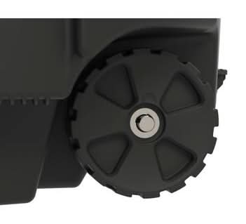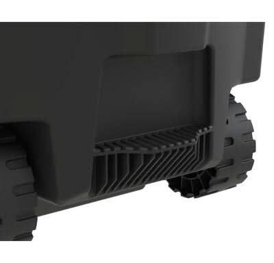 The HDX 32 Gal. trash can with wheels is engineered for durable residential efficiency. The sleek black color fits in with various outdoor backgrounds. The 3.75 in. wheels provide for an easy transport from one spot to another. With it's reinforced foothold and innovative venting channels, removing liners has never been easier. This trash can also features a snap fit open lid and smooth ergonomic pull-handle with convenient bag cinches, making trash disposal a breeze. Emblazoned with bold HDX branding and high-polished feature callouts, including the gallon size, it combines functionality with style. Crafted from a high-quality proprietary resin material that boasts UV resistance, it's built to withstand extreme conditions without fading, cracking or crushing. The rounded handles, reinforced for extra durability, facilitate easy lifting and moving, even under heavy loads. The reinforced base is specifically designed to endure being dragged over rough surfaces, significantly extending the can's lifespan and overall durability. Additionally, contoured base handles and a rim enhanced with an integrated rib structure offer improved grip and ergonomics, reducing strain and boosting efficiency during emptying. This trash can doesn't just hold waste; HDX is committed to quality and designed to make trash management as convenient and reliable as possible. Color: Black