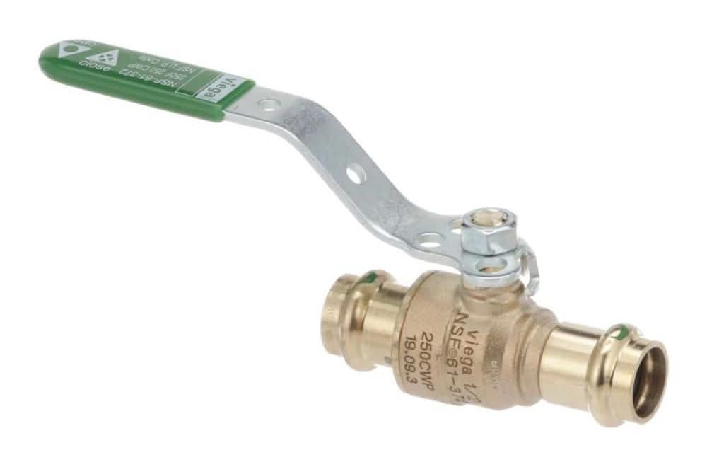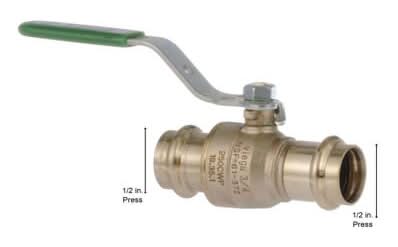 Control the flow of potable water with the 1/2 in. ProPress bronze ball valve. The lead-free valve features a 316 stainless-steel ball, EPDM sealing elements, and a double stem seal. Press connections make installing this ball valve quick and efficient. Unlike traditional pipe fittings, there's no need for calibration, flame or heavy equipment. Instead, Viega ProPress bronze ball valves install in just four easy steps: cut the copper tube to length, remove any burrs and surface imperfections, measure and mark the fitting insertion depth, and use a press tool to connect the Viega ProPress zero-lead ball valve for a secure connection. Smart Connect technology identifies unpressed connections during pressure testing to ensure proper connections the first time and eliminate callbacks. Approved to the most codes and standards of any other press fitting system (IPC, UPC and NSF included), and with more than 400 different fitting configurations to suit virtually any type of plumbing or HVAC job, Viega ProPress ball valves are the top choice of professionals around the globe. Size: 1/2 In