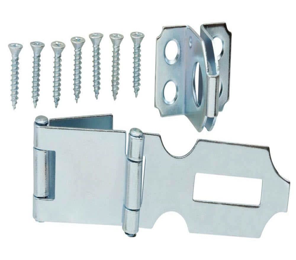 This 3 in. double hinge safety hasp by Everbilt is ideal for doors, cabinets and gates. This easy-to-install safety hasp features steel construction with a zinc-plated finish and an adjustable staple for easy placement. It includes screws for simple installation, and they are hidden once the hasp is closed. Size: 3 In
