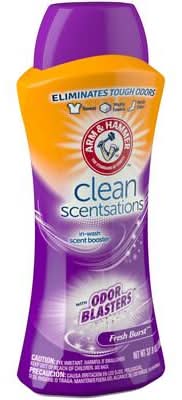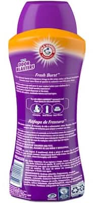 Arm & Hammer 37.8 oz Clean Scentsations Odor Blasters In-Wash Scent Booster - Fresh Burst has a vibrant burst of fragrance that brings to life crisp notes of floral freshness. Sheer notes of creamy peach add richness, while undertones of glowing amber, warm woods, and clean musks deliver lingering softness. Create your own blast of sparkle to enhance and lift your days. Packaging: Reusable