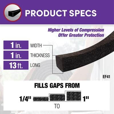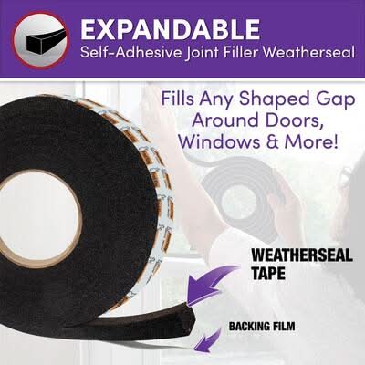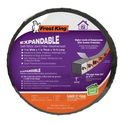 The Frost King Expandable Self Stick Weatherseal conforms to gaps. It creates a watertight seal and fills gaps from 1 in. down to 1/4 in. It is weather and insect resistant. Great for uneven surfaces. Cancer and Reproductive Harm - www.P65Warnings.ca.gov Size: 1 in x 13 ft