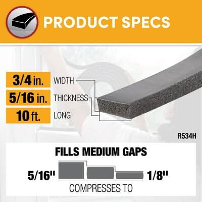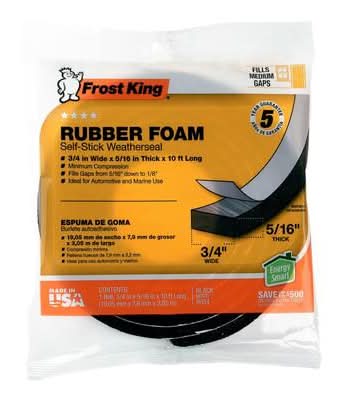 Frost King 3/4 In. X 5/16 In. X 10 Ft. Black Rubber Foam Weatherseal Tape