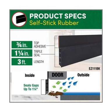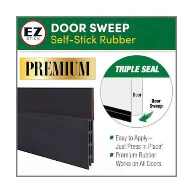 This heavy-duty self stick, triple seal door sweep is the easiest style of all to install. Just peel off the protective paper and press into place. It is black in color. • Color: Black • Size: 1.5x36 in