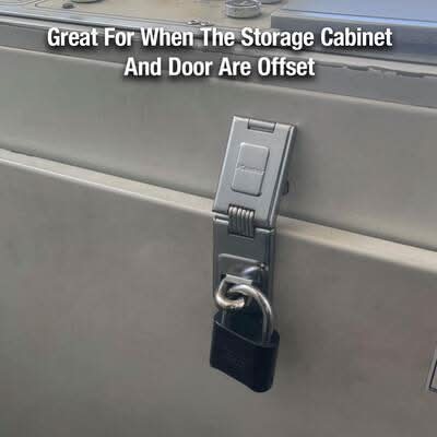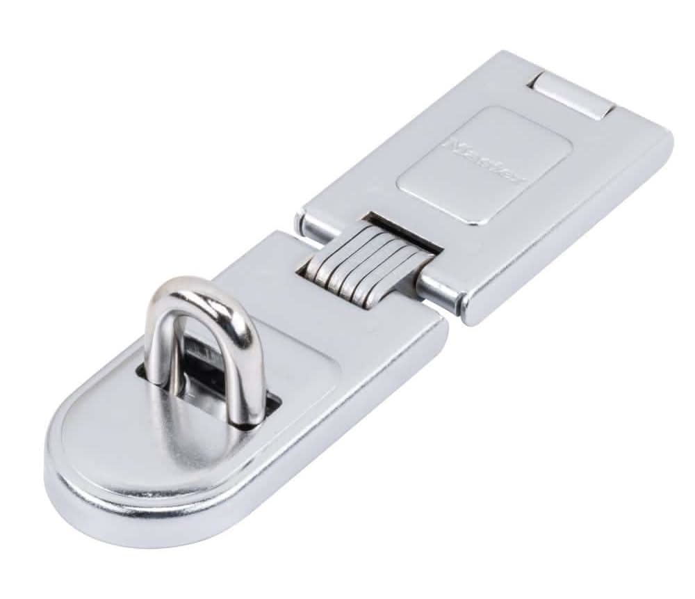The Master Lock 720D Steel Heavy Duty Hasp Latch features a 6-1/4 in. (16 cm.) long hardened steel body. Hasp latch is zinc-plated hardened steel which provides added strength and weatherability. Hasp's hardened boron alloy staple offer maximum protection against cutting and sawing. Hinged body is Ideal for reaching around corners and securing hard-to-lock property. Master Lock's Lifetime Guarantee provides peace of mind from a brand you can trust. Size: 6-1/4 In, Long