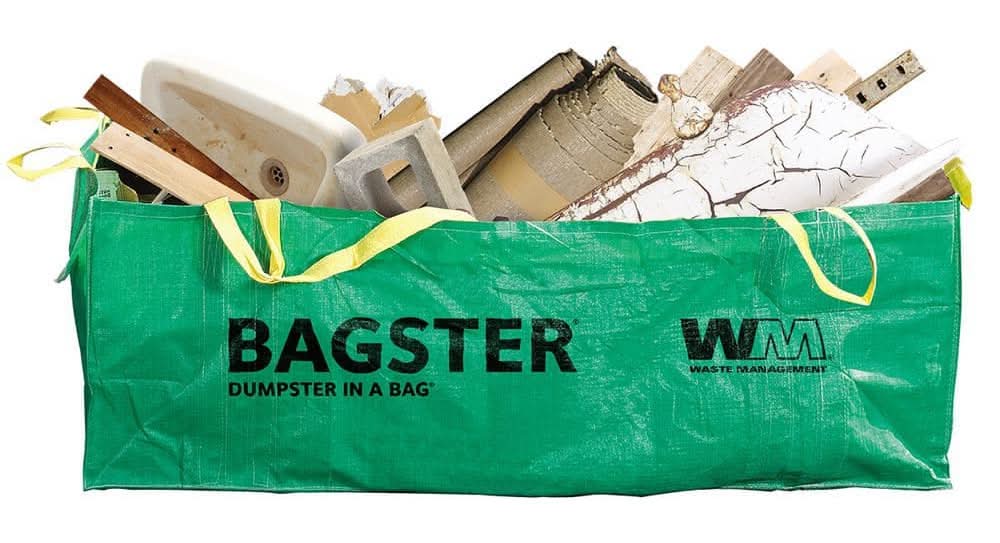 The Bagster Dumpster in a Bag service is an easy-to-use waste removal solution that works on your schedule. Now you can clean up after almost any renovation, remodel, or move in 3 easy steps: 1. BUY the Bagster bag; 2. FILL it with waste from any renovation; 3. CLICK OR CALL whenever you're ready for pickup. The Bagster bag is perfect for projects that are too big for contractor bags but too small for a full-size dumpster. And while contractor trash bags can break easily, the Bagster bag is flexible and tear resistant. It holds up to 3,300 lb. or 3 cubic yards (3 CUYD) of waste and debris, making it a much better option than contractor garbage bags for your next renovation. The Bagster bag opens to 8 ft. L x 4 ft. W x 2.5 ft. H, but arrives compact so you can easily store it for as long as you want. Just unfold it and place it in a convenient location whenever you need it. Then, when your renovation is finished, simply schedule your pickup and pay on thebagster.com or by phone. With cleanup this easy, you'll never need to buy contractor bags again! Service not available in all areas and collection fees and other restrictions may apply. See thebagster.com for details.