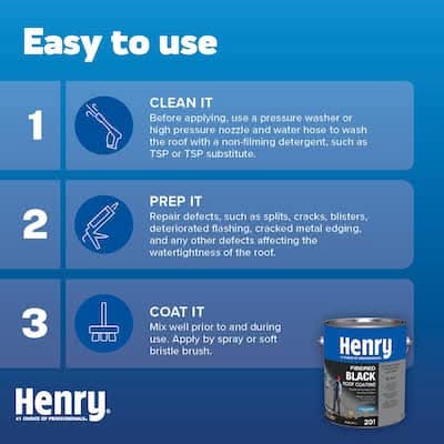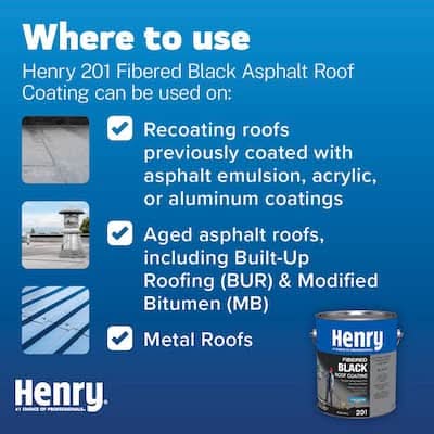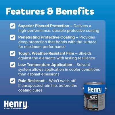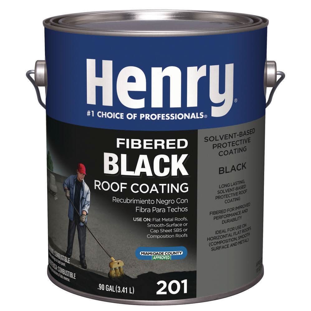 Henry 201 Fibered Black Roof Coating is a premium cold-applied, brush or spray-grade asphalt coating in a solvent system. It is a penetrating type protective coating formulated to provide a tough, durable, weather-resistant film to protect existing roofs in good condition. The solvent system allows working at lower temperatures This product can expose you to chemicals including Benz[a]anthracene, which is known to the State of California to cause cancer. For more information go to: www.P65Warnings.ca.gov. Color: Black