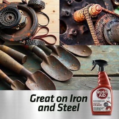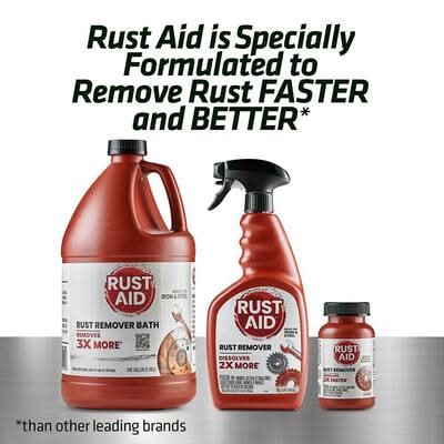 Designed to dissolve 2x more rust than the other leading brand, Rust Aid Rust Remover spray works great on iron and steel. This powerful formula easily dissolves heavy rust on metal surfaces. To use, remove loos WARNING: This product can expose you to chemicals including diethanolamine, which is known to the State of California to cause cancer, and ethylene glycol, which is known to the State of California to cause birth defects or other reproductive harm. For more information go to www.P65Warnings.ca.gov.