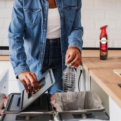 Odors. They're everywhere. lingering in the air or arising at the most awkward times. Forget masking them with some froo-froo spray, Febreze Air Effects actually eliminates air odors. This can of ahhh-some straight up removes stink with a neat little molecule called cyclodextrin (Bonus: It's naturally made from corn). It's a handy air freshener that's easy to use: Simply spray in a sweeping motion and clean away those bad smells anywhere. the bathroom, the kitchen, that cabin you rented for the weekend, the shoe closet, your kid's room. anytime you want an instant burst of fresh. with the crisp, spiced scent of Apple Cider, you can delight the senses with cinnamon apple goodness wherever (and whenever) you please. and because Febreze AIR uses 100% natural propellants, you can confidently freshen your home every day. Looking for even more ways to breathe happy with Febreze. Take the freshness on the road with CAR Vent Clips. Packaging: Reusable