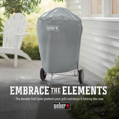 Embrace the pouring rain, freezing snow, and scorching sun, knowing that whatever the weather, your charcoal grill is covered. The lightweight yet durable Grill Cover easily slips on and fastens to your grill. Keeping it as shiny and new as the day you bought it. Packaging: Reusable