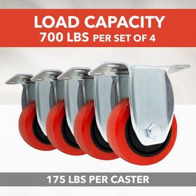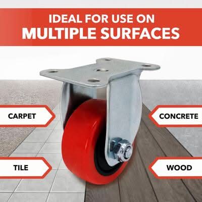 Everbilt 3 In. Red Polyurethane And Steel Rigid Plate Caster Wheel With 175 Lb. Load Rating