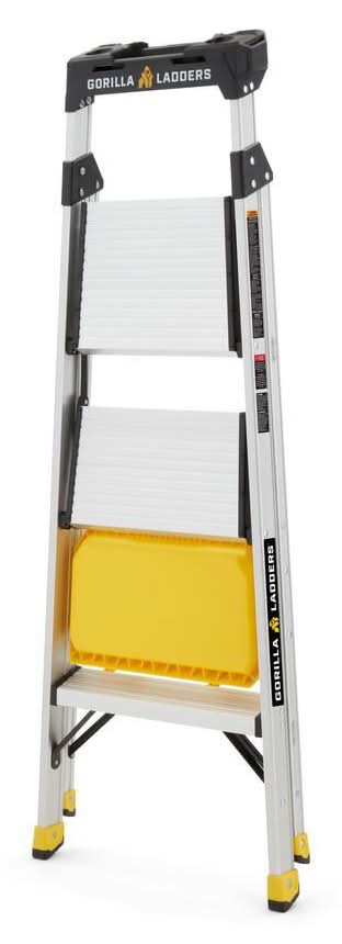 The Gorilla Ladders 4.5 ft. Aluminum Dual Platform Ladder with Project Bucket is designed to meet all your climbing needs. This ladder features a 9 ft. reach height, the same as a traditional 5 ft. stepladder, with the added benefit of dual platform top steps. These large, comfortable and stu This product can expose you to chemicals including Chromium VI, which is known to the State of California to cause cancer and birth defects or other reproductive harm. For more information go to www.P65Warnings.ca.gov Size: 4.5 Ft