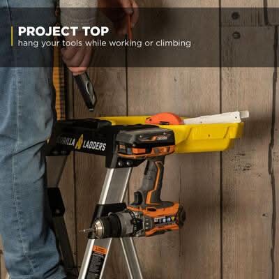 Gorilla Ladders 4 .5 Ft. Aluminum Dual Platform Step Ladder With Project Bucket ( 9 Ft. Reach ), 250 Lbs. Capacity Type I Duty Rating