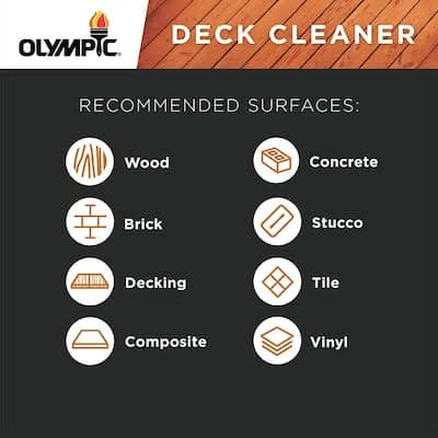 Surface preparation is the critical first step in achieving a beautiful, long-lasting wood finish. Olympic Premium Deck Cleaner is a unique, premium quality product that penetrates deep to remove dirt and mildew stains. Restores the clean, natural look to exterior wood, concrete, composites and other surfaces.