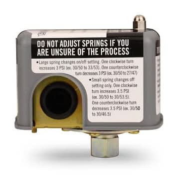 This pressure switch signals the pump to start when the water system drops to 30 PSI (factory set) and stops at 50 PSI (factory set). This switch is to be used with submersible well or jet pumps. It can be wired 115-Volt or 230-Volt. This switch must be used in conjunction with a well pressure tank This product can expose you to chemicals including Lead, which is known to the State of California to cause cancer and birth defects or other reproductive harm. For more information go to www.P65Warnings.ca.gov.
