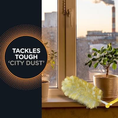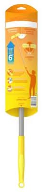 Swiffer Super Extender Handle extends up to 6 ft. allowing you to reach more areas of your home and Trap Plus Lock up to 3x more dust and allergens. 360 of specially coated fibers grab onto dust and don't let go. They are uniquely designed to Trap plus Lock dust from every direction versus feather duster, common inanimate allergens from cat and dog dander and dust mite matter. Size: 6 ft