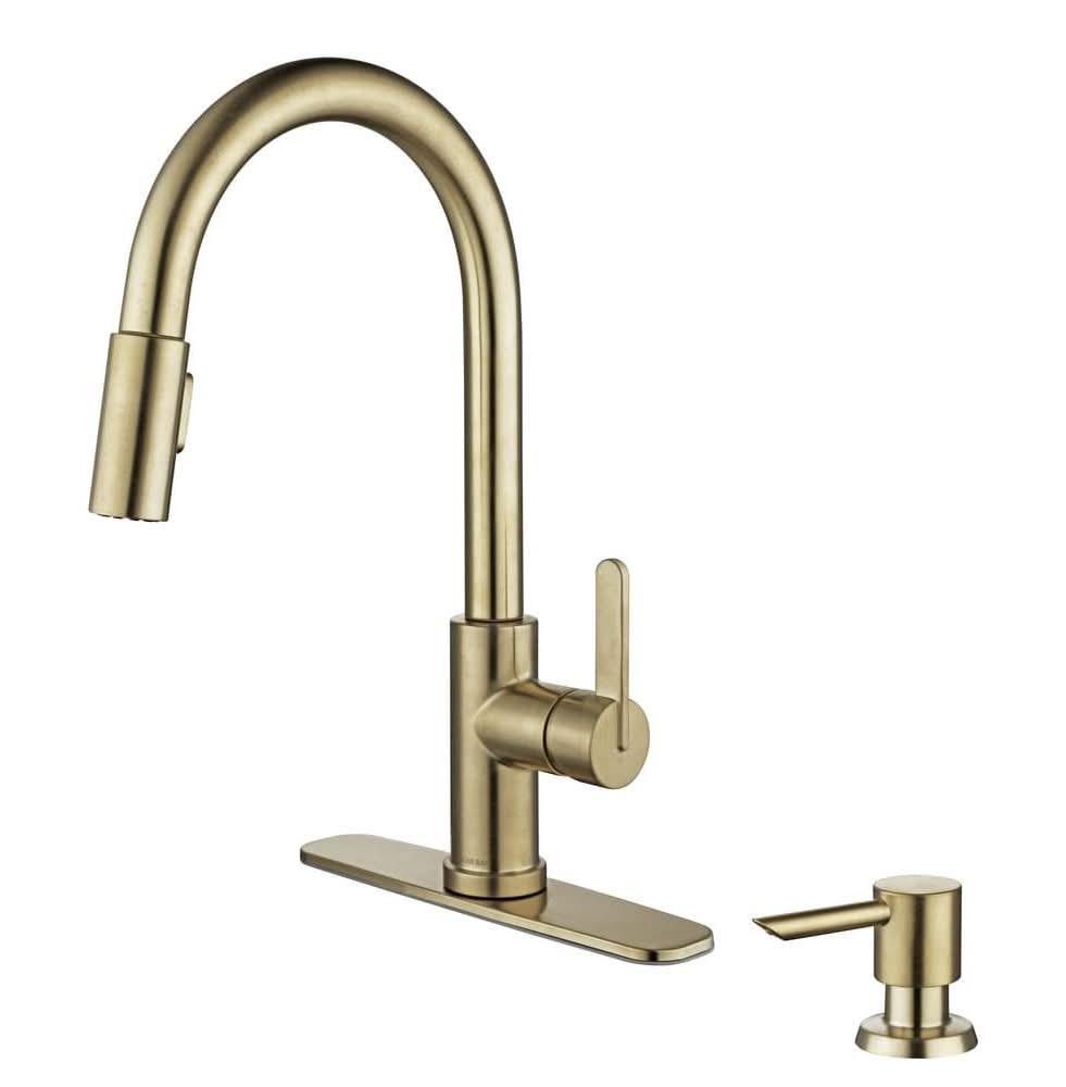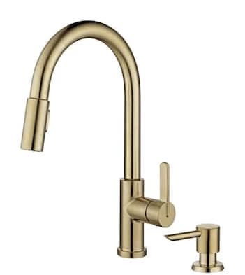 Glacier Bay Paulina Single Handle Pull Down Sprayer Kitchen Faucet With Turbospray, Fastmount And Soap Dispenser In Matte Gold