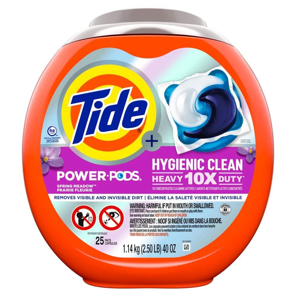Tide Hygienic Clean Heavy Duty 10X Spring Meadow Scent Laundry Detergent Pods, 25-Count