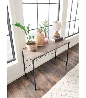 An ideal computer or writing desk that can utilize an empty space or add purpose to your living room or office. This sleek and modern collection has a Gray wood-grain finish that allows it to fit easily in many interiors. Place photo frames or decor pieces to give it a personalized touch. Perfect in your entryway, behind your sofa or in your office. This product can expose you to formaldehyde, which is known to the State of California to cause cancer. For more information go to www.P65Warnings.ca.gov.
