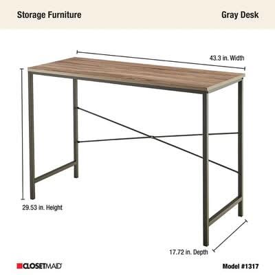 Closetmaid Mixed Material Storage Furniture 43.3 In. Rectangular Gray Writing Desk