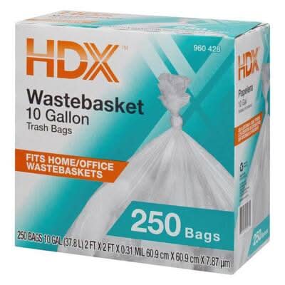 Hdx 10 Gallon Clear Waste Liner Trash Bags (250-Count)